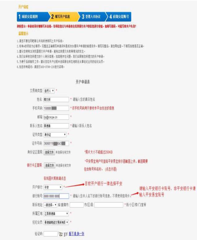 按要求填寫相關信息,選擇會員類別,個人客戶填寫示范如下: