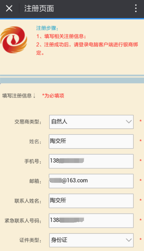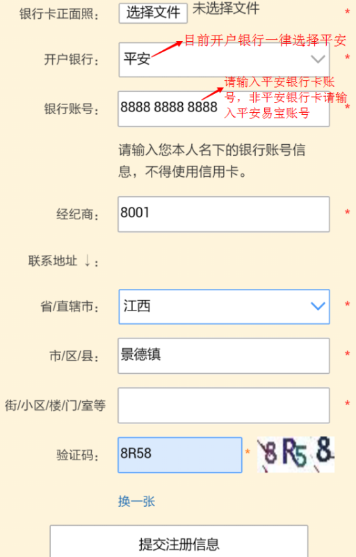 按要求填寫相關信息,選擇會員類別,個人客戶填寫示范如下: