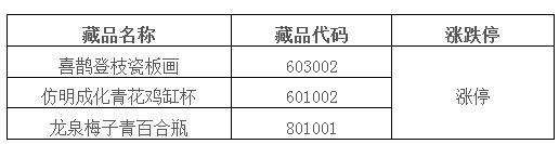 下列交易藏品于2016年9月28日、9月29日、9月30日連續三個交易日價格漲跌停: