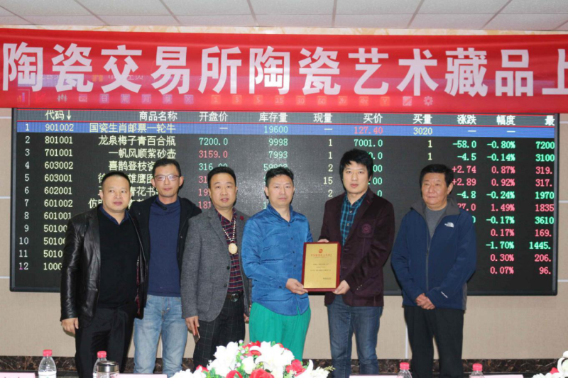 2016年12月13日,伴隨著一陣陣清脆的鑼聲,景德鎮陶瓷交易所在會展大廳隆重舉行了第七批藏品上線儀式此次發行機構為南京三睿堂文化傳播有限公司。到場的領導有景德鎮陶瓷交易所執行董事周雪松、南京三睿堂文化傳播有限公司董事長謝嶺翔、江蘇心善淵投資管理有限公司董事長文正強等,在此大家共同見證了陶交所這一激動人心的重要時刻。