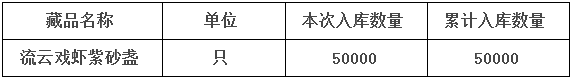 應(yīng)發(fā)行會員申請,《流云戲蝦紫砂盞》已經(jīng)于2017年1月13日辦理景德鎮(zhèn)陶瓷交易所托管中心入庫手續(xù),檢驗簽證工作正在進行。現(xiàn)將托管結(jié)果公布如下: