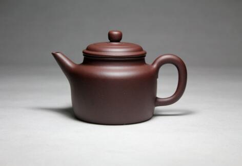 一說清代邵大亨初創,原意是壺體仿照鼓型,后人仿制做這種壺形就成了仿古代壺型的意思了。另說最早見于近代趙松亭按吳大徴授意所作,身扁、腹鼓、頸高、蓋板平滑,壺蓋與口沿子母線吻合嚴密,合成圓線飽滿,扁鈕有力,虹鈕有勢,二彎流胥出自然 ;圓圈把勻勢而起,有些款把圓下有垂,富于靈動,整體骨肉亭勻,收展有度,有一氣呵成之暢。